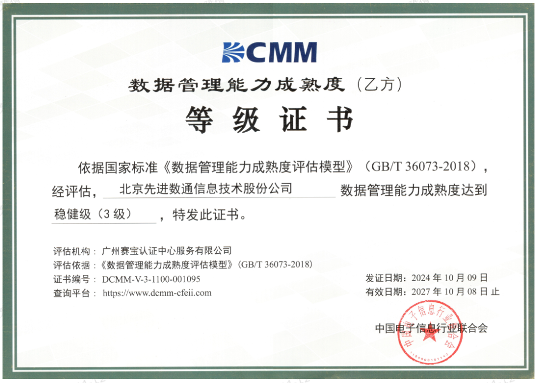 近期,中国电子信息行业联合会公布了最新一批顺利获得数据管理能力成熟度(DCMM)贯标等级认证的企业名单。森林舞会成功取得数据管理能力成熟度稳健级(三级)认证。这一认证的取得,标志着森林舞会在数据治理体系构建和数据管理与应用能力方面,已经达到了国家权威组织认可的标准。这不仅是对森林舞会在数据管理领域专业能力的肯定,也是对其在有助于数字化转型服务和数据驱动决策方面所做努力的认可。